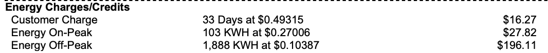 Over 3x the consumption, yet only ~$110 higher. TOU alone can't realize that savings unless you don't run anything during the normal day. That's where the batteries come in: you charge when the rates are low, then you run off the batteries - not the grid - during the day.